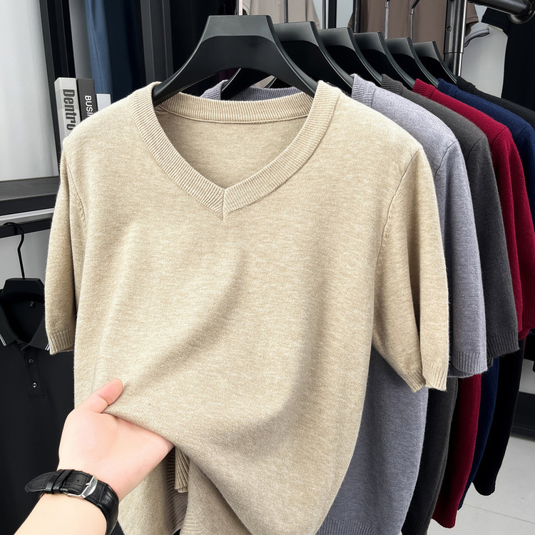 【8色可选】半高领纯色男士短袖针织衫中青年休闲毛衣